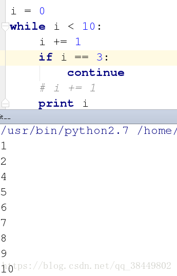 2.continue所在的循环体并没有结束。