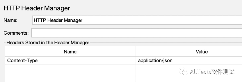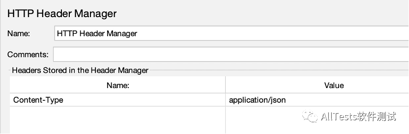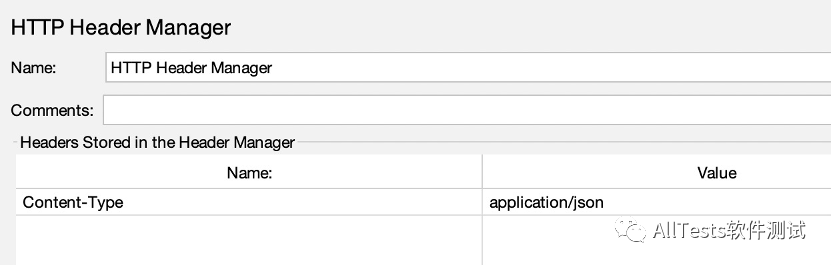 在线程组下添加HTTP信息头管理器,添加值为Content-Type: application/json