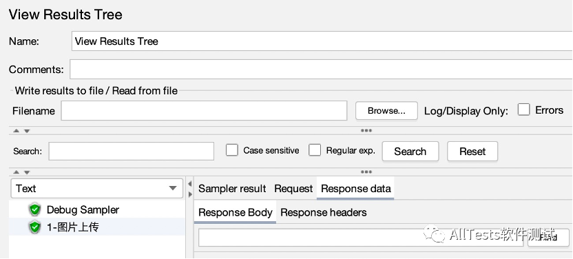 将“1-图片上传”接口从原有的线程组里抽出来,单独放进新建的线程组里,即两个线程组。“1-图片上传”接口在一个线程组里,其他接口在一个线程组里。