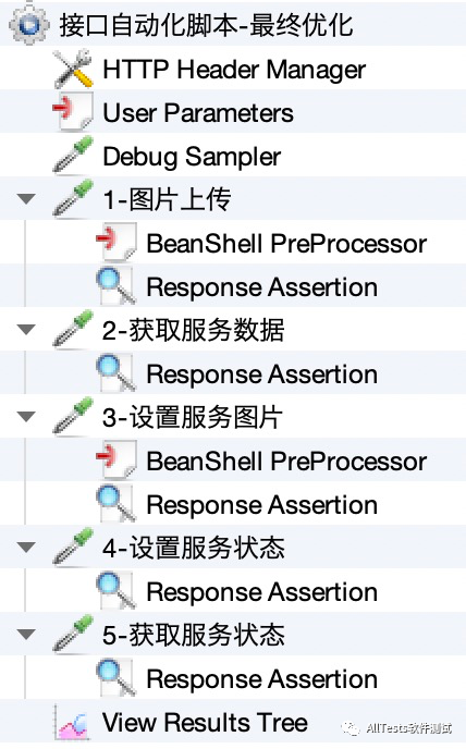 此时公共请求头里的指定信息被删除了,之后的接口要用到这个信息,所以在后续的接口上再添加回来,例如“3-设置服务图片”接口会用到公共的信息头,在此接口上添加BeanShell PreProcessor前置处理器,添加请求头信息到公共请求头里。