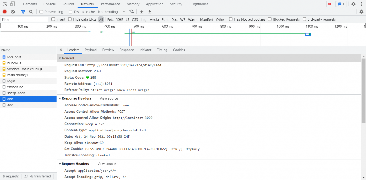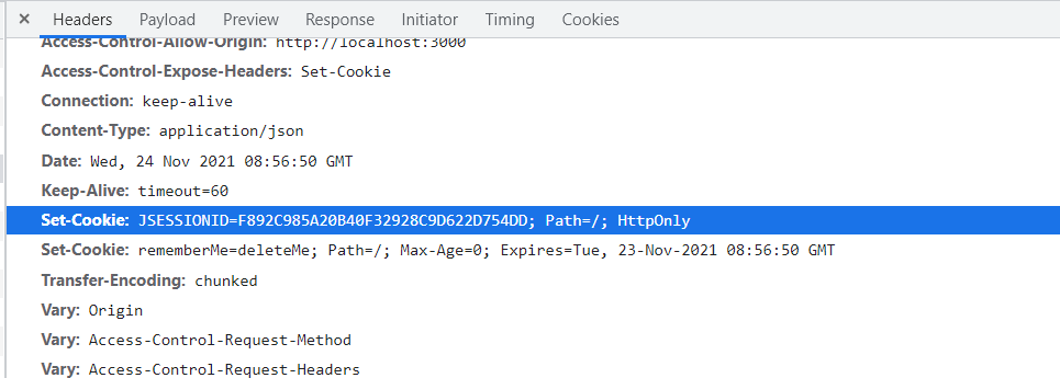 当调用登录接口登录成功时,后端的响应头会添加一个set-cookie的参数