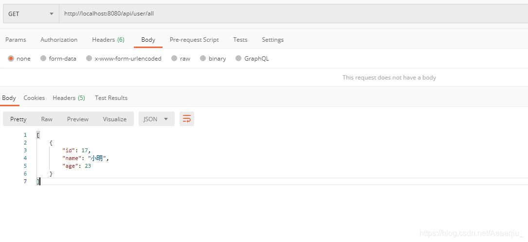 启动Application后,使用postman工具进行接口测试