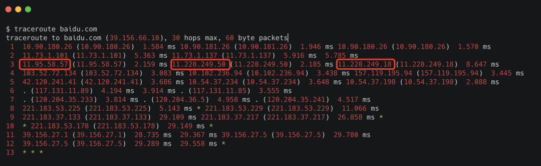 我们可以通过traceroute看下链路是否存在等价多路径的情况。