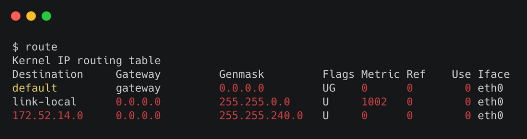 路由表里记录了到什么IP需要走什么端口,以及走这条路径的成本(metric)。