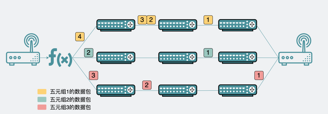 为了解决这个问题,我们需要有一个合理的路径选择策略。为了避免同一个连接里的数据包乱序,我们需要保证同一个连接里的数据包,都走同样的路径。