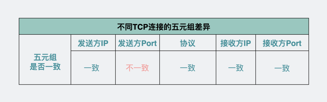 这好办。我们可以通过连接的五元组(发送方的IP和端口,接收方的IP和端口,以及通信协议)信息定位到唯一一条连接。