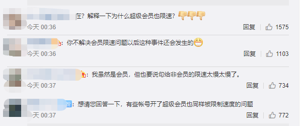 如果你以为购买了会员就以为不限速那你就太天真了。会员同样会限速,只有超级会员才会极速下载的权限。这跟前段时间腾讯视频推出的VVIP如出一辙。
