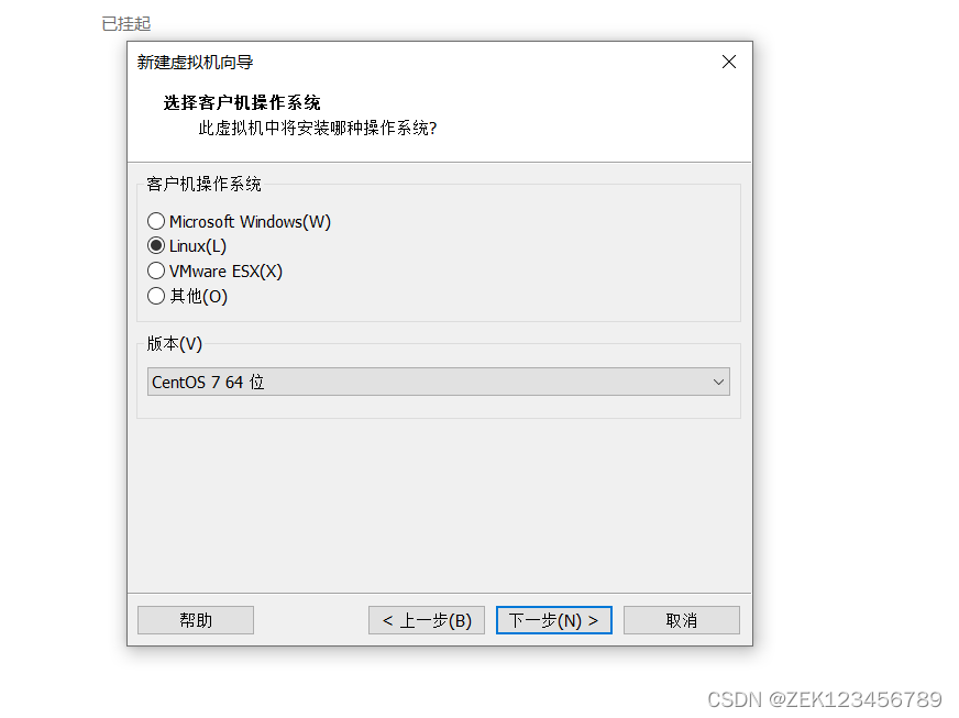 4、到达 选择客户操作系统 页面,选择 Linux ,版本选择CentOS 下一步: