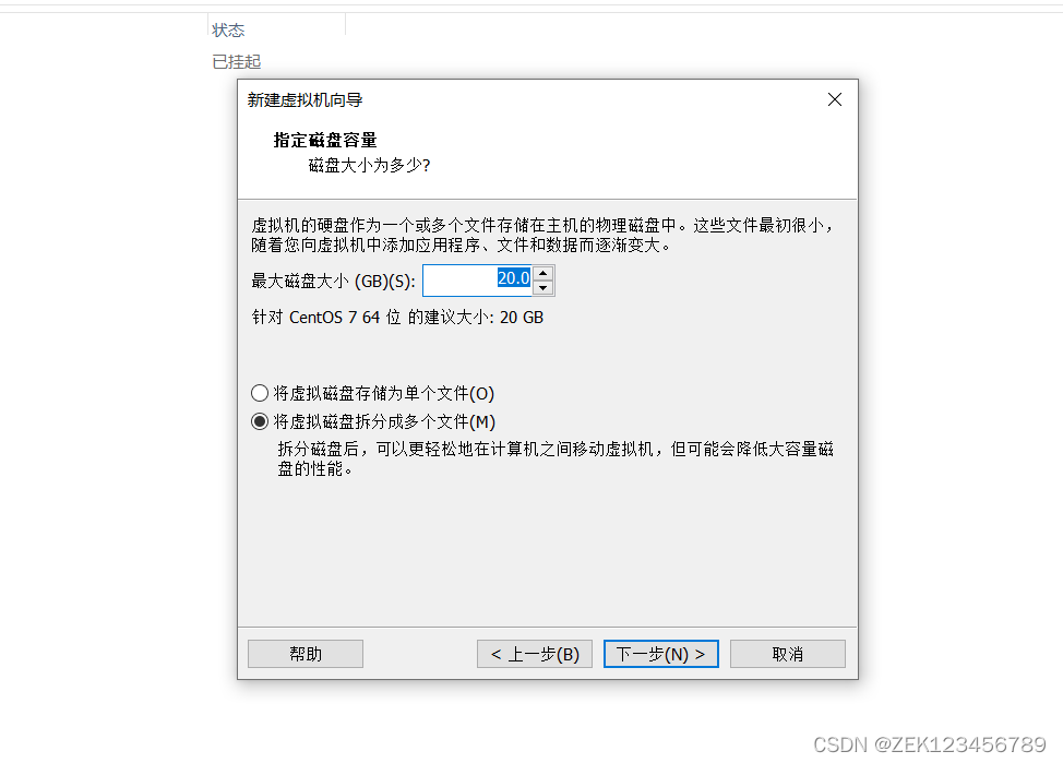 6、进入 指定磁盘容量大小,根据自己喜好调节磁盘大小,将虚拟磁盘拆分成多个文件,下一步:
