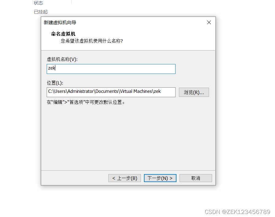 5、到达 命名虚拟机 页面,给机器命名的时候一定要英文名,然后选择合适的位置存放,下一步: