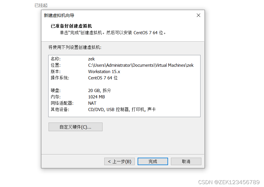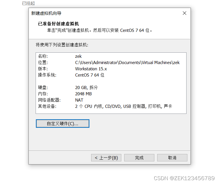 7、进入 已准备好创建虚拟机 页面,这时候需要自定义硬件: