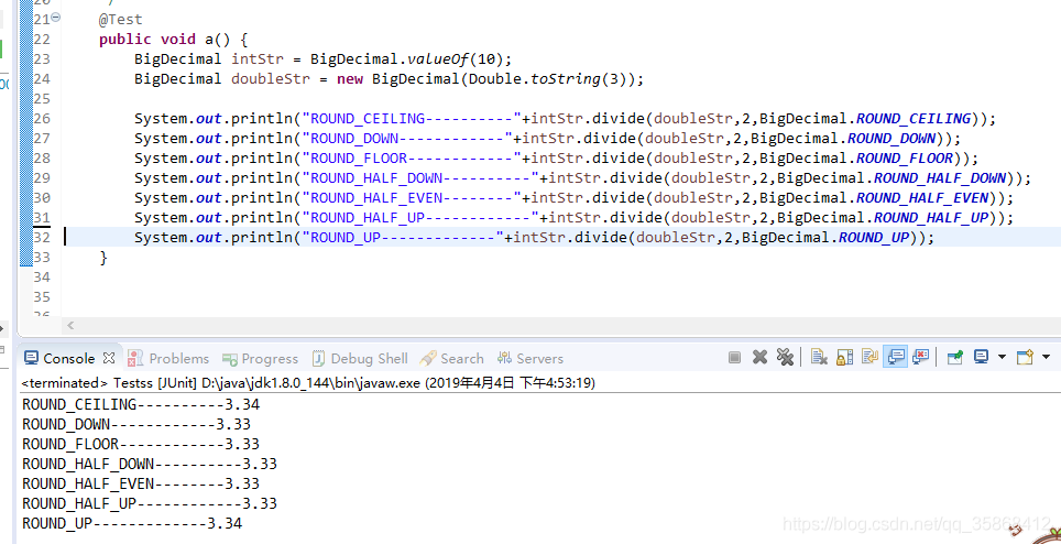 ROUND_UNNECESSARY //计算结果是精确的,不需要舍入模式