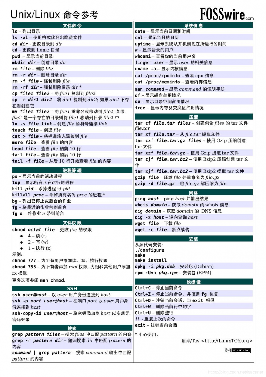 i→ Insert 模式,按ESC回到 Normal 模式.x→ 删当前光标所在的一个字符。:wq→ 存盘 + 退出 (:w存盘,:q退出) (陈皓注::w 后可以跟文件名)dd→ 删除当前行,并把删除的行存到剪贴板里p→ 粘贴剪贴板hjkl(强例推荐使用其移动光标,但不必需) →你也可以使用光标键 (←↓↑→). 注:j就像下箭头。:help <command>→ 显示相关命令的帮助。你也可以就输入:help而不跟命令。(陈皓注:退出帮助需要输入:q)