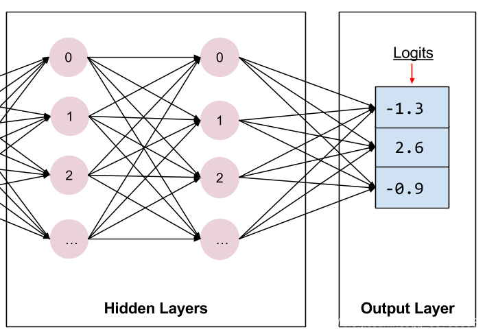 - logit保存原始logit值(在本例中为-1.3,2.6和-0.9)