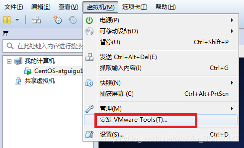 3)选择虚拟机菜单栏--安装VMware tools