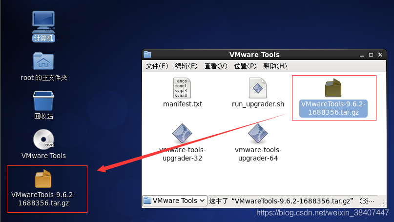 5)右键解压VMwaretools-9.6.2-1688356.tar.gz