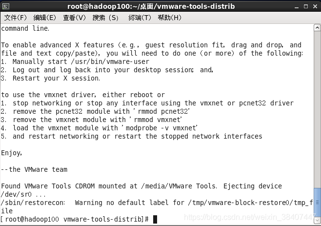 最后用“./vmware-install.pl”命令来运行该安装程序,然后根据屏幕提示一路回车。到此整个安装过程算是完成了。