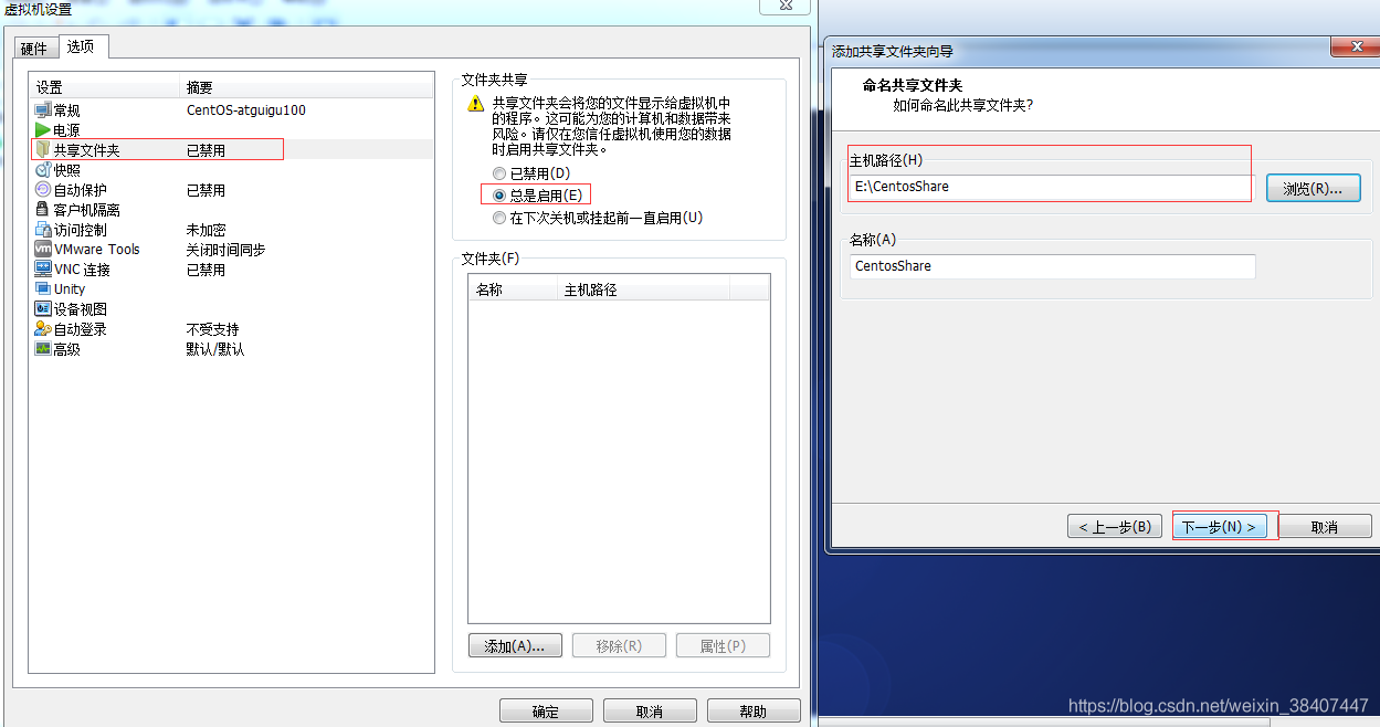 9)设置共享文件夹,实现Windows ß--------àCentOS文件共享