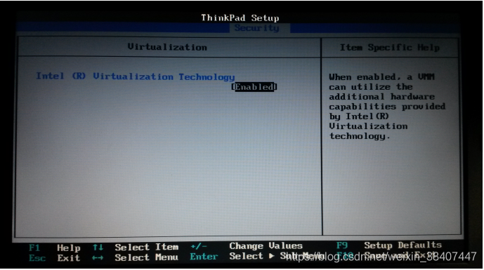 需要打开笔记本BIOS中的IVT对虚拟化的支持