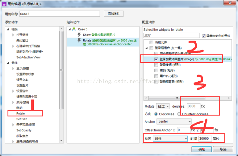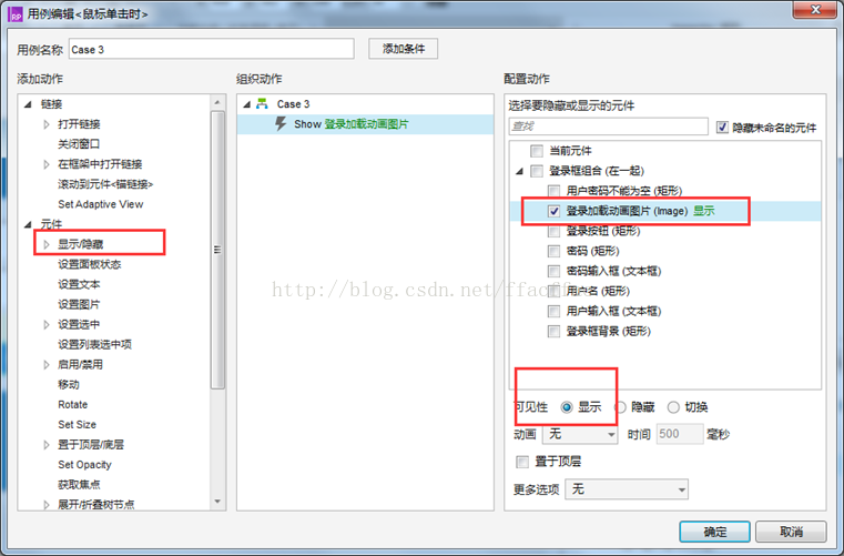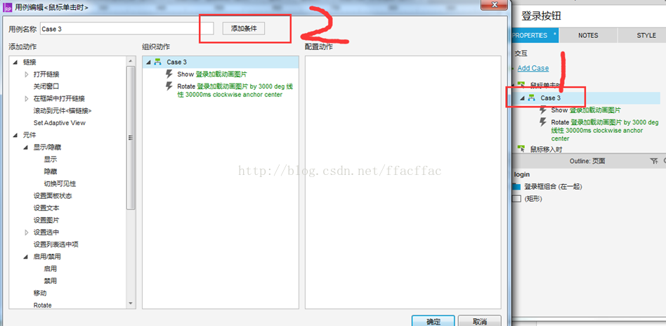 接下来要给登录按钮设置一些事件,双击窗口右边“鼠标单击时”—>在弹出的用例窗口中进行如下图操作: