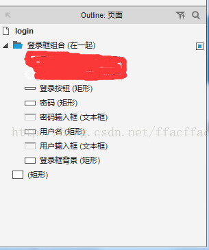 首先画出如图所示的登录界面图,两个输入框,一个登录按钮,各个控件的命名如下,Ctrl+鼠标左键选中所有控件,点击鼠标右键,选“组合”将这些控件组合起来,如下图所示: