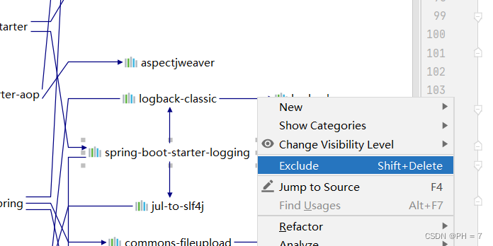 - (1)先将logback的上游jar包剃掉,通常是:spring-boot-starter-logging