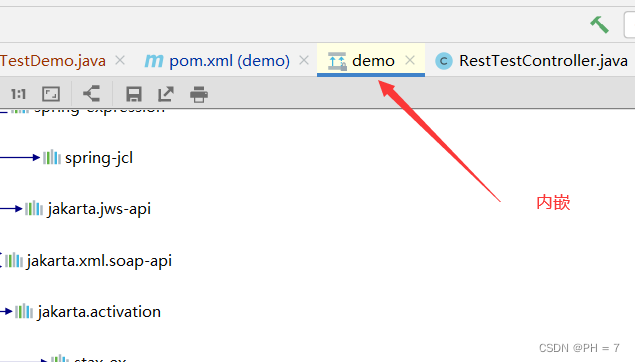 </dependency>- 另外提一句,IDEA的依赖树,内嵌的对于查找某个jar很好用,新窗口的查找太好用