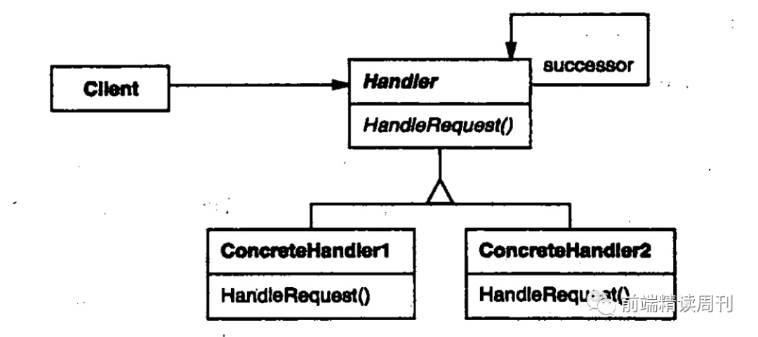 职责链的简单实现模式也分为两种,一种是每个对象本身维护到下一个对象的引用,另一种是由 Handler 维护后继者。