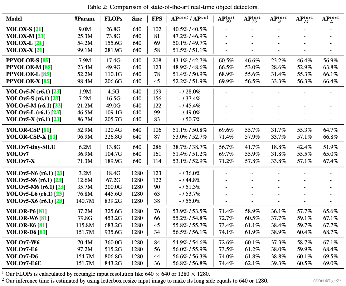 主要是现有的一些trick的集合以及模块重参化和动态标签分配策略,最终在 5 FPS 到 160 FPS 范围内的速度和准确度都超过了所有已知的目标检测器。