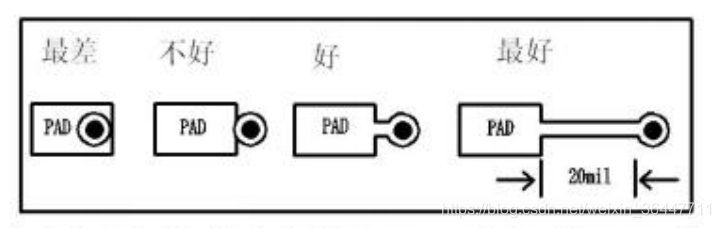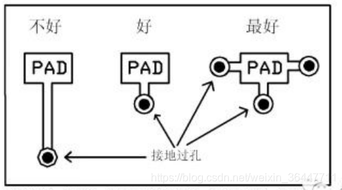 - 贴片焊盘上不能有通孔, 以免焊膏流失造成元件虚焊。重要信号线不准从插座脚间穿过;