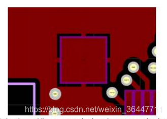 - 电源芯片周围应尽量留出比较大片的铜铂并多加过孔以方便散热。.● 需特别注意的是,某些IC底部会有一接地的散热块,在做PCB封 装时需放置一相应大小的焊盘(必须为焊盘,做钢网才能开窗),且加上一个或多个过孔以便散热。
