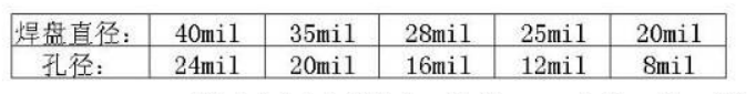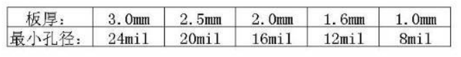 - PCB的最小过孔定义取决于板厚度,参考下表 :