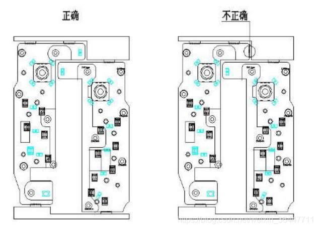 - 对于要压五金件的地方,不可走除地线外的其它信号线(在某些情况下地线也不可走),对于要走信号线的特殊情况,需在压五金范围内覆盖整片丝印。