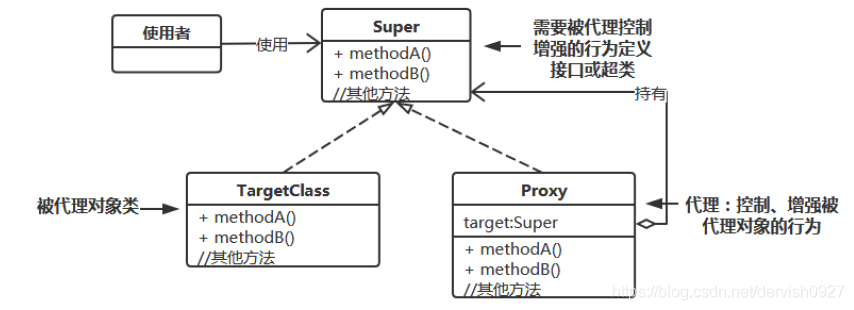 代理中控制使用者对目标对象的访问,以及进行功能增强。