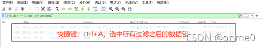 第2步:全选或标记(Mark)需要导出的数据包——全选;