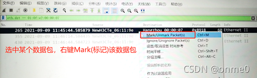第2步:全选或标记(Mark)需要导出的数据包——标记;