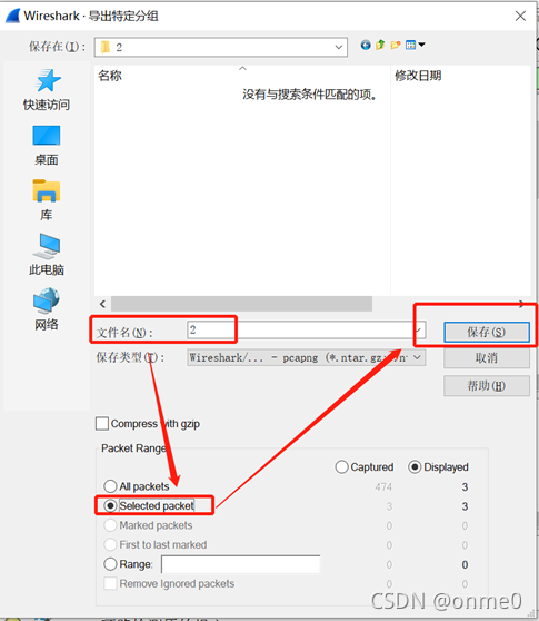 第3步:点击“文件”——>“导出特定分组”——>选择导出的数据包(Selected packet或者Marked packets);