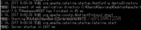 当我们刚下载tomcat启动的时候,时间并不是很长才2000ms左右,每次时间都不一样,总之不长,如图:
