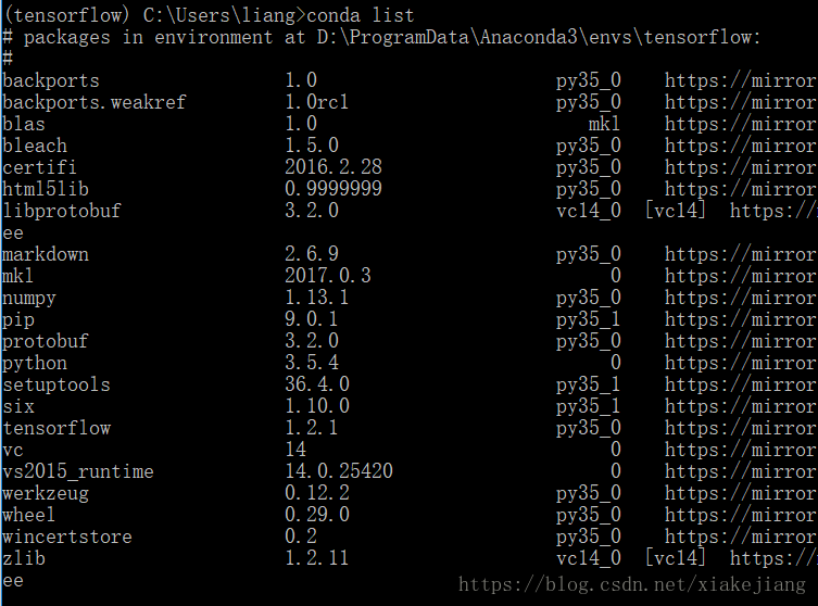 再conda list,tensorflow numpy等库已经安装存在: