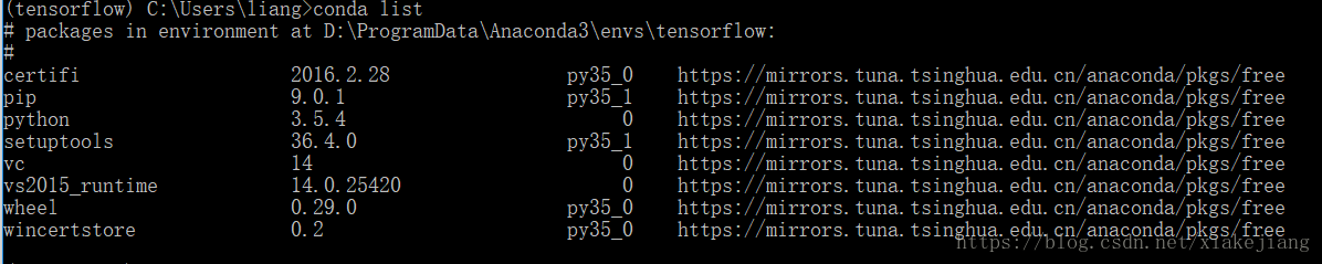 受一篇csdn博客启发,发现在tensorflow环境下运行conda list,没有tensorflow numpy等包,如下图