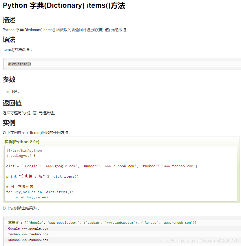 http://www.runoob.com/python/att-dictionary-items.html