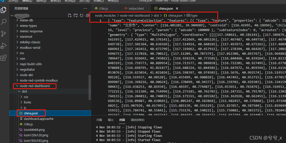在项目中 node_modules/node-red-dashboard/dist 中放置静态文件 china.json