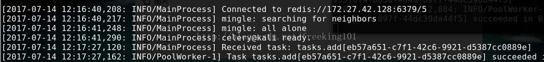 >>>看你输入的内容已经观察两台服务器上你启动celery服务的输出。