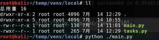 现在我们的任务已经被加载到了内存中,我们不能再像之前那样执行python sample.py来运行程序了。我们可以通过终端进入python然后通过下面的方式加载任务。输入python语句。