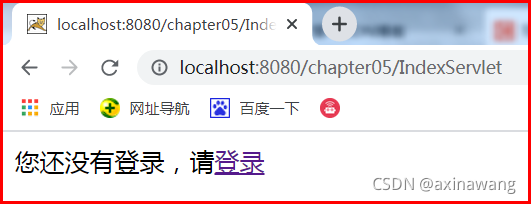 response.getWriter().print("您还没有登录,请<a href='/chapter05/login.html'>登录 </a>");