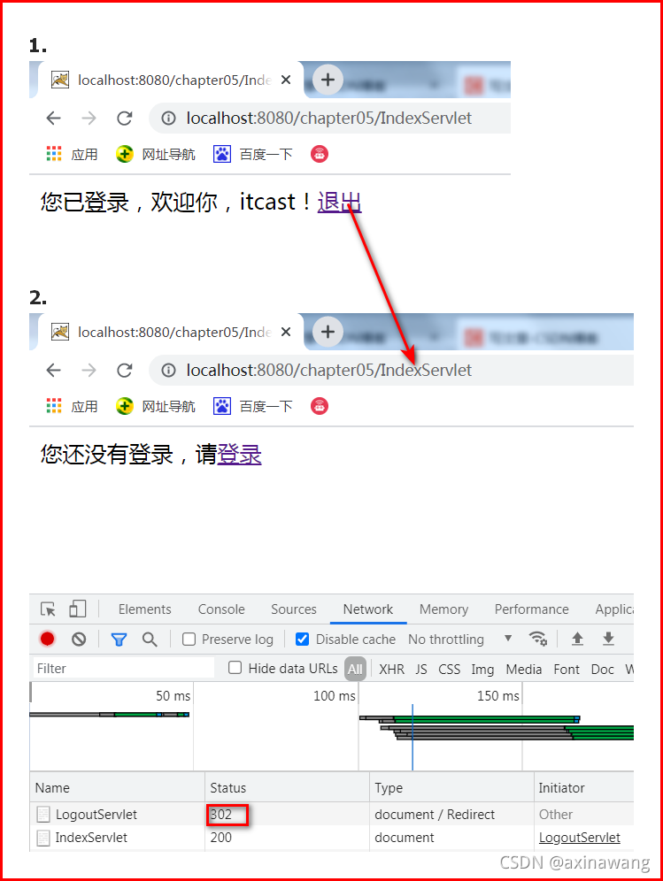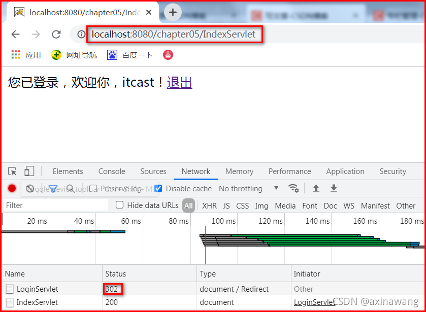response.getWriter().print("<a href='/chapter05/LogoutServlet'>退出</a>");