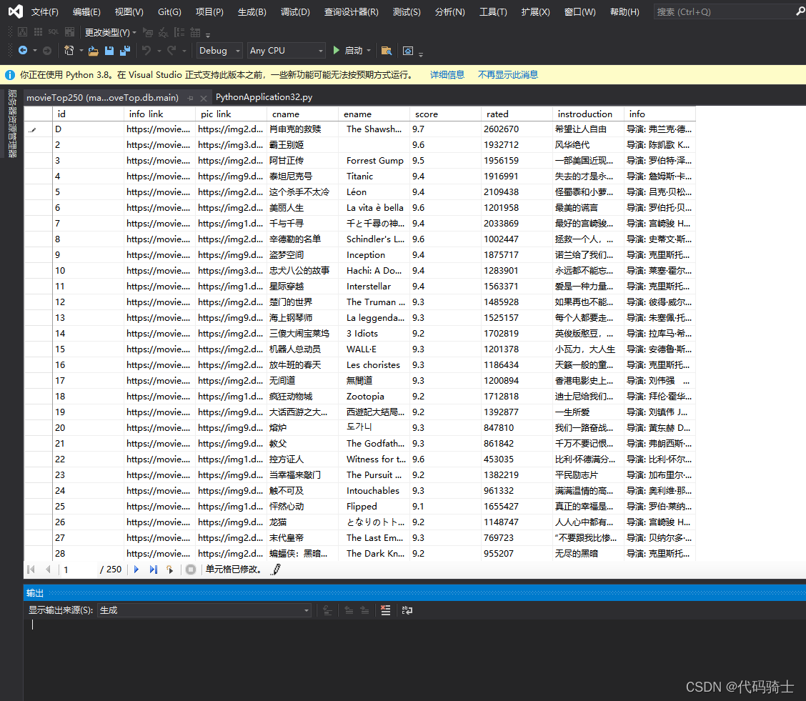 上次我们爬取了豆瓣电影Top250条电影信息,并将其内容保存在了Excel表中,这次我们对保存数据的函数稍作修改将保存数据的位置改为数据库,具体代码如下。
