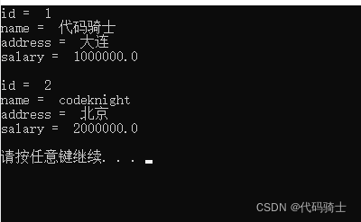 insert into company values(2,'CodeKinght',18,'大连',1000000);