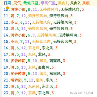 write_to_csv('天气预报-{}15天天气预报.csv'.format(city_name), data14, 14)