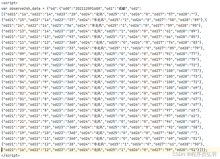 temp.append(i['od24']) # 添加当前时刻风力方向